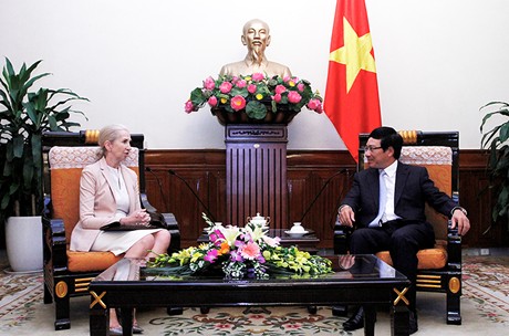 范平明副总理希望埃里克森大使将与越南伙伴找出新合作机遇,鼓励挪威企业赴越经营投资,特别是对造船、航海、石油、水电、水产、电信等挪威具有优势的领域投资。范平明副总理肯定,越南外交部与各部委将为埃里克森大使完成任务创造有利条件。