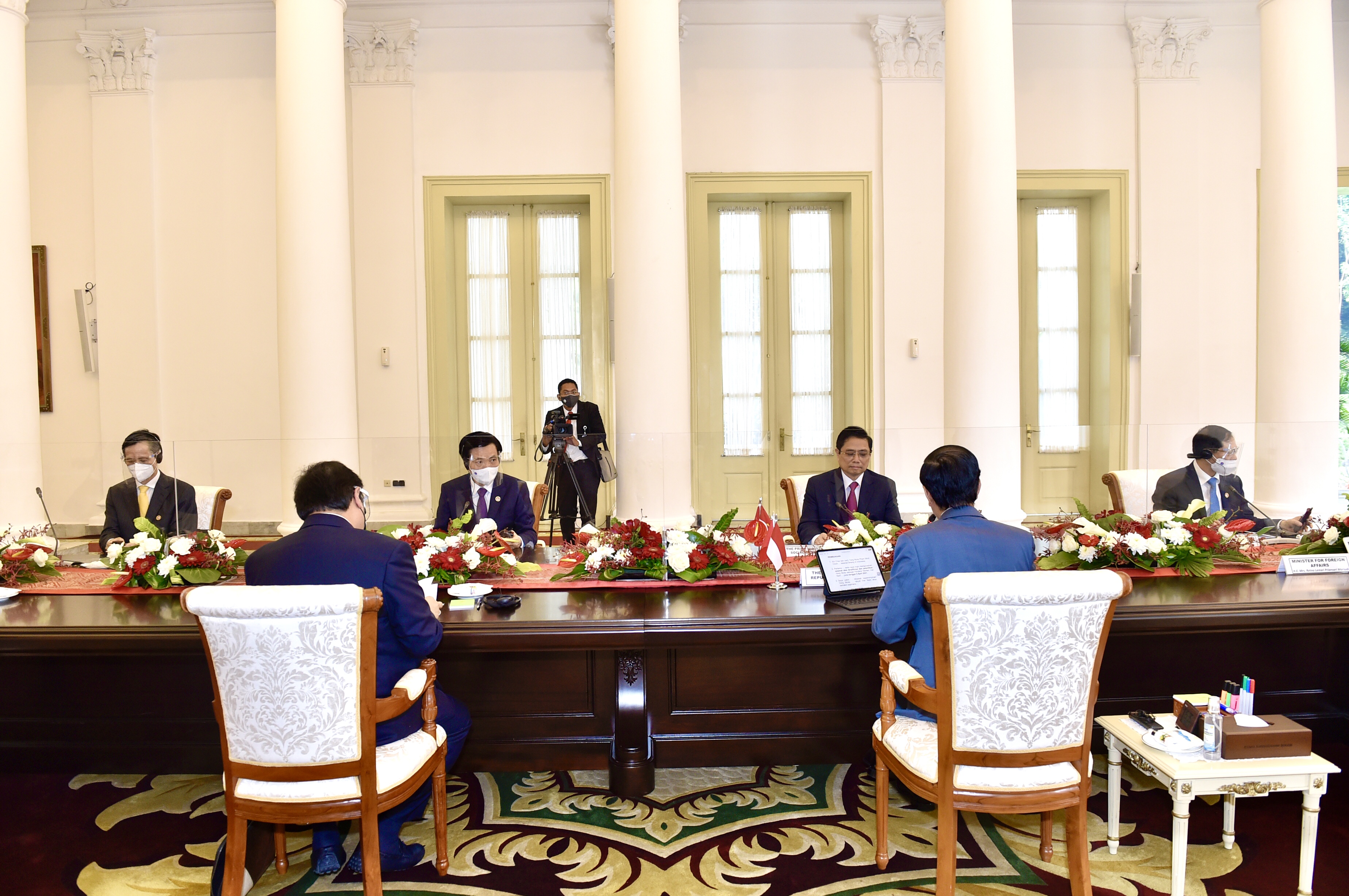 越南外交部部长裴青山,越南政府办公厅主任、部长陈文山,外交部副部长阮国勇,计划投资部部长陈国芳、越南驻印尼大使阮荣光共同参与——图片:VGP/日北 |