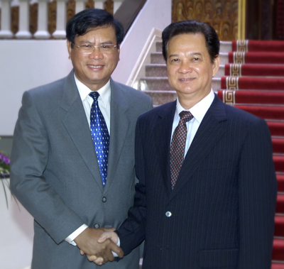 越南政府总理阮晋勇和老挝政府总理波松·布帕万——图片:政府门户网站 |