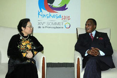 在刚果工作期间,10月12日,国家副主席阮氏缘会见了法语国家国际组织(OIF)秘书长迪乌夫(Abdou Diouf)。