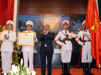 越共中央政治局委员、政府副总理阮春福代表党、国家向调查安全力量授予胡志明勋章。