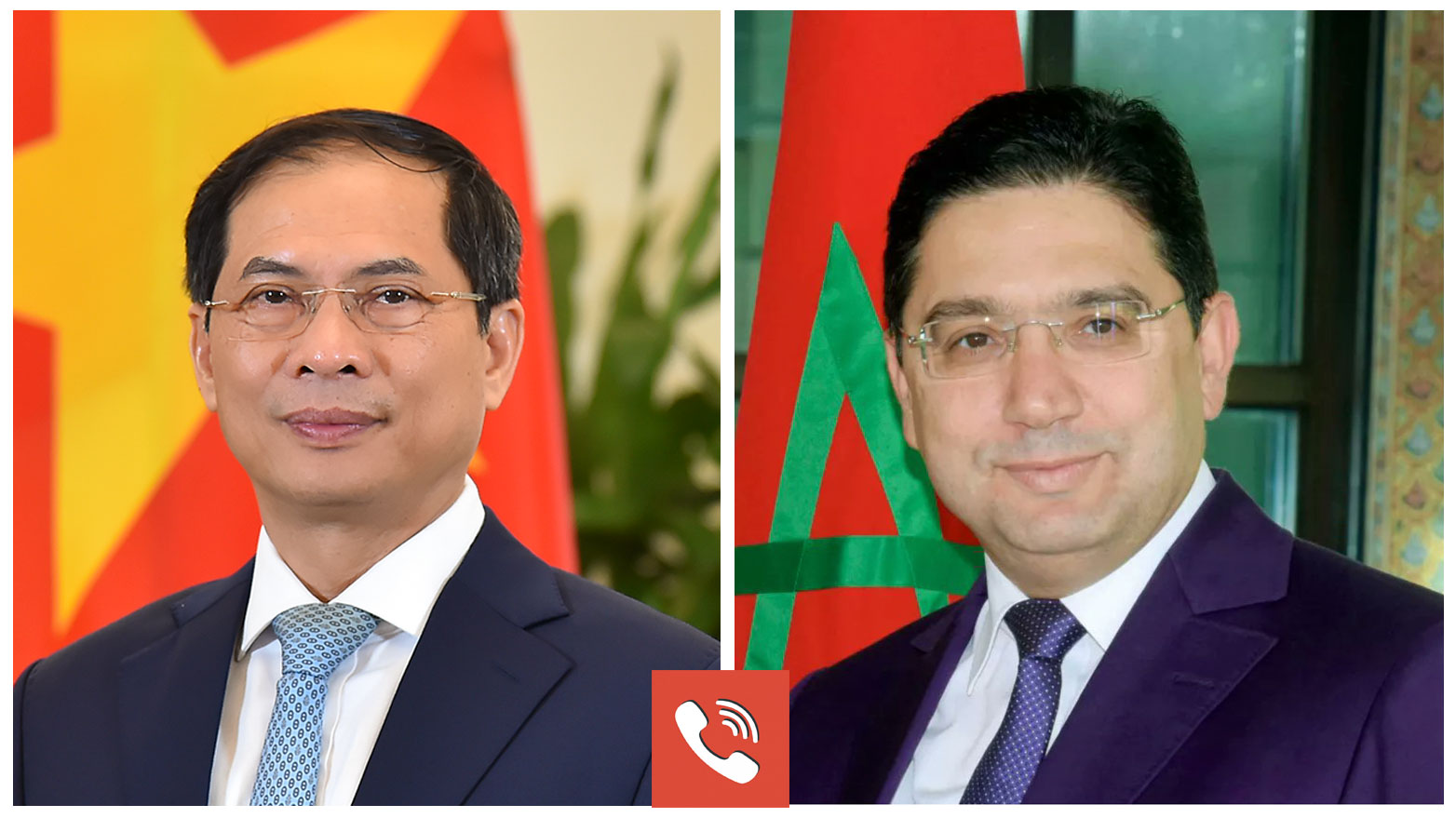 越南外交部部长裴青山(左)同摩洛哥外交与国际合作大臣纳赛尔·布里达通电话。 |