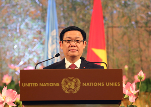 在纪念仪式上发表讲话时, 政府副总理王廷惠强调, 越南重视与联合国的关系,越南感谢联合国与各成员国40年来为越南给予宝贵的帮助和支持。