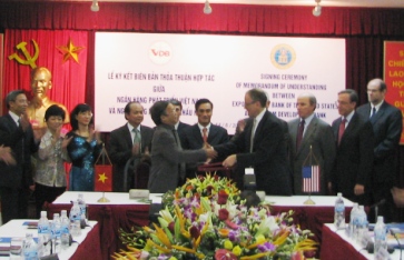 按此,两个银行将按照共同为各项目提供赞助或越南开发银行向美国进出口银行贷款(或向由US EX-IM Bank担保的商业银行贷款)以便给两方关注领域的各项目贷款方式合作。