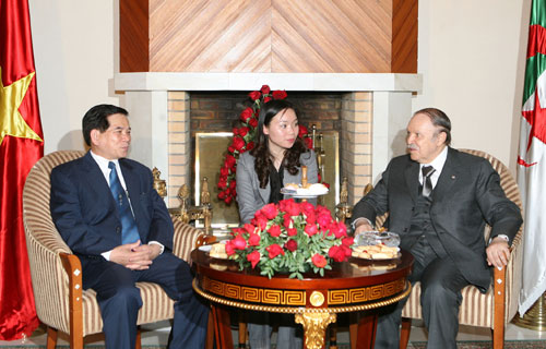 越南国家主席阮明哲与阿尔及利亚总统 阿卜杜拉齐兹.布特弗利卡会谈——图片:VOV |