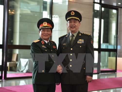 越南国防部部长吴春历与中国国防部部长常万全——图片:越通社