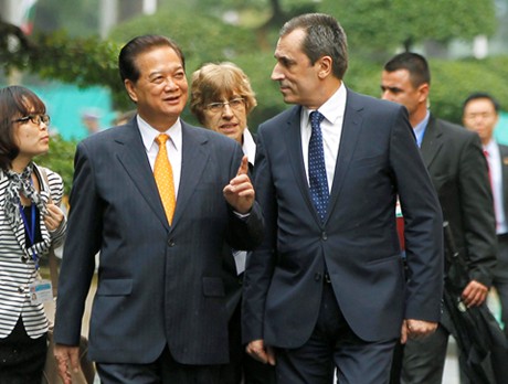 阮晋勇总理和普拉门·奥雷沙尔斯基总理就进一步深化两国关系以及共同关心的国际与地区问题深入交换意见,阮晋勇总理强调,越南重视发展与保加利亚的传统友好合作关系。