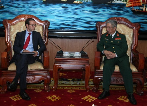 越南国防部副部长阮志咏欢迎美国总统代表麦艾文访问越南,他表示,近年来越美两国关系发展势头良好。
