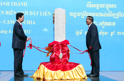洪森首相表示,越柬陆地边界勘界立碑工作所取得的成果揭开了两国关系史上的新篇章。