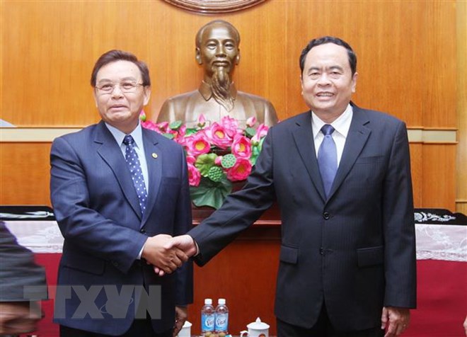 陈清敏主席会见老挝建国阵线中央委员会主席赛宋蓬·丰威汉——图片:越通社 |