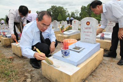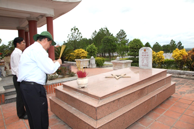 阮善仁副总理在9号公路国家烈士陵园亲手修装各座无名烈士墓上香悼念 图片:VGP |