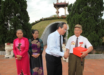 阮善仁副总理在广治古城向这里的伤兵、烈士家属进行慰问,并赠送礼品 图片:VGP |