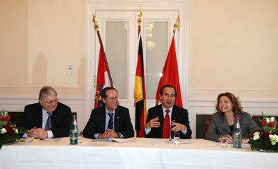 阮善仁副总理分别与德国黑森州经济部长Dieter Posch、和森州政府办公厅主任Winterrmeyer和科学艺术部部长Kuhn-Hormann进行工作会晤。
