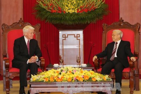 阮富仲总书记表示,越南-冰岛两国合作取得了积极进展。双方各有优势,在合作与发展过程中可互补;希望两国推进经贸投资、教育培训、能源和环保等各领域的合作。阮富仲总书记祝愿奥拉维尔·拉格纳·格里姆松总统此访将取得圆满成功。