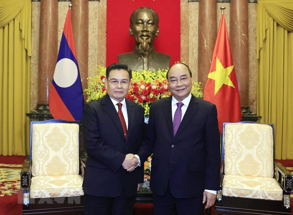 越南国家主席阮春福与老挝国会主席赛宋蓬·丰威汉 |