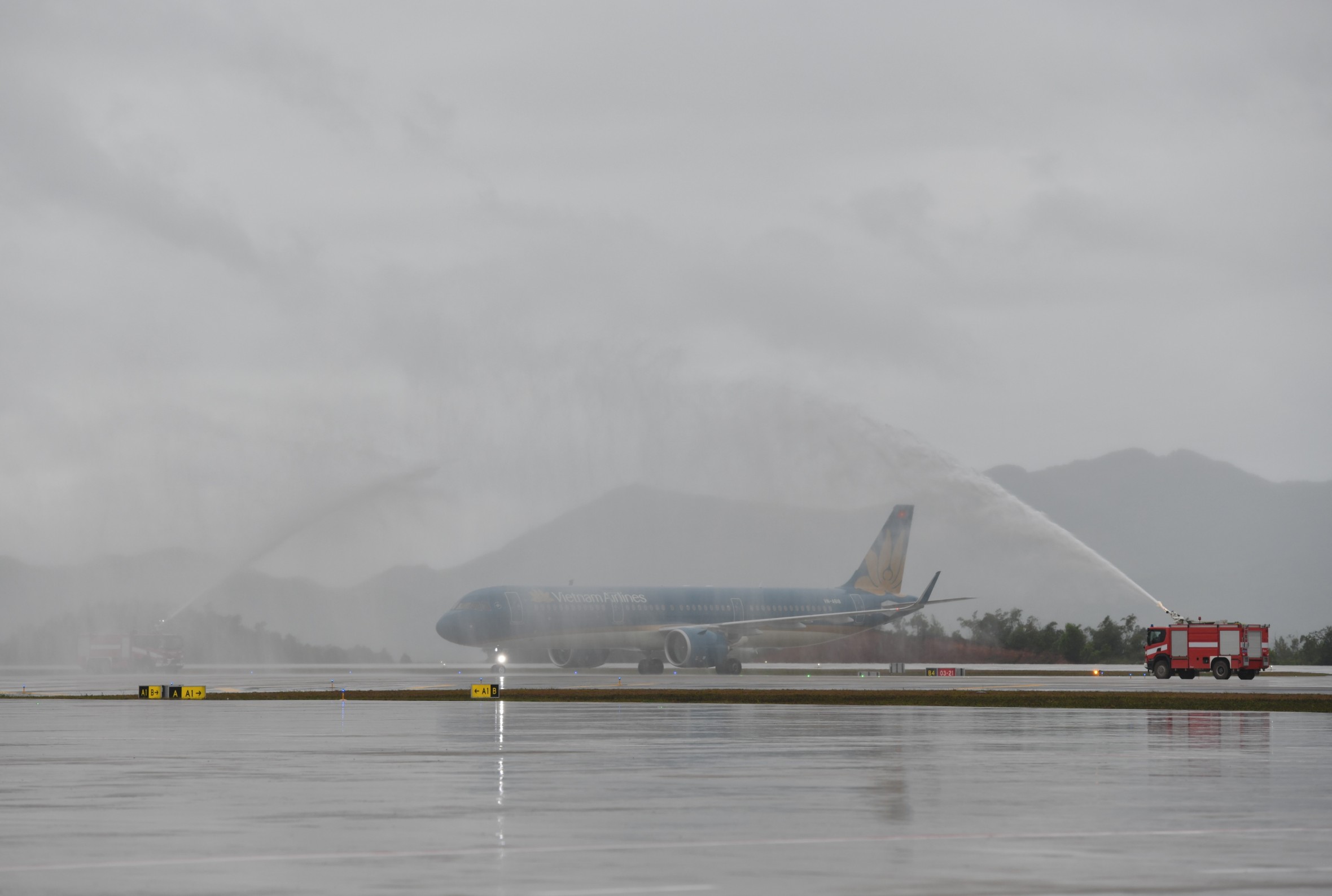 为抵达云屯国际机场的第一航班举行水炮欢迎仪式——图片:VGP |