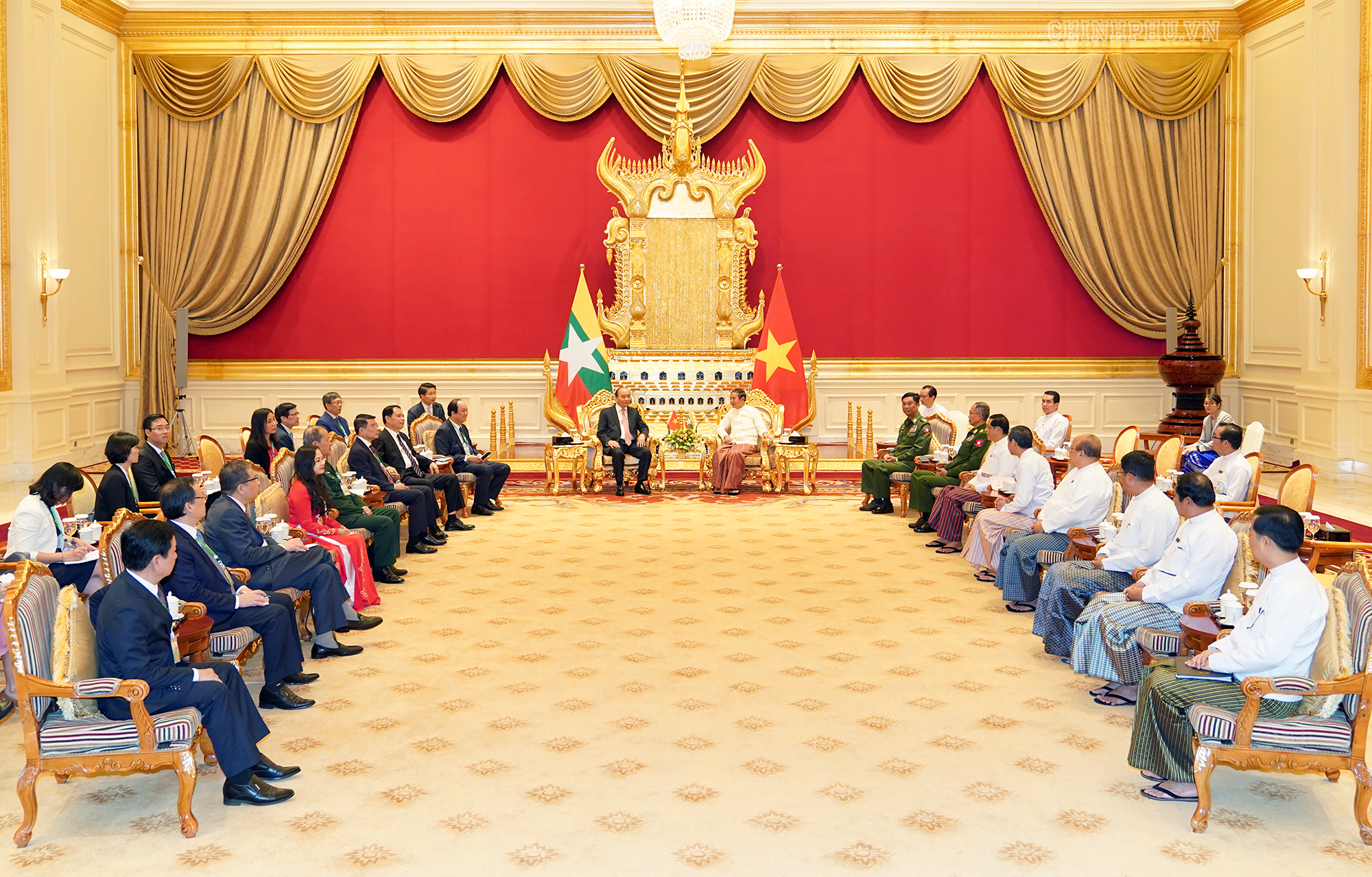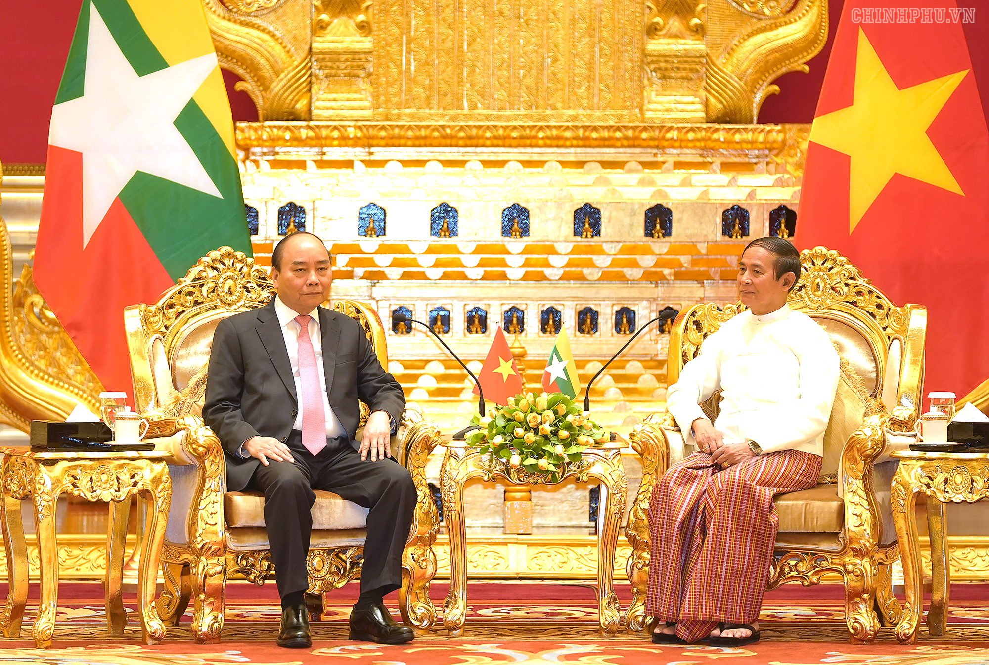 阮春福总理会见缅甸总统吴温敏——图片:VGP/光孝 |