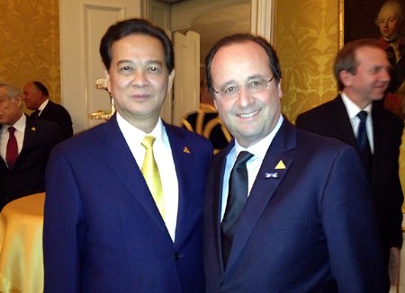 阮晋勇总理与法国总统奥朗德合影。图片:VGP |