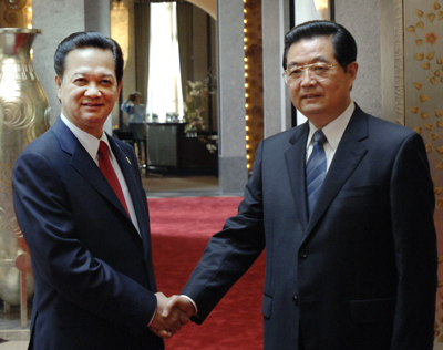 政府总理阮晋勇和总书记、国家主席胡锦涛一致认定越中两国是友谊邻邦,过去60年内两国友谊关系不断得到巩固与发展,这符合于两国人民的基本利益和愿望。
