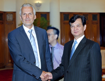 阮晋勇总理和最高审计机关国际组织秘书长Josef Moser——图片:VGP |