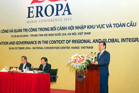 在会议上发表讲话时,阮晋勇总理强调,越南是国际社会、国际组织及重要国际论坛的积极而富有责任的成员国。近年来,越南一直积极参加东部地区国际公共行政组织的各项活动并为期作出积极贡献。