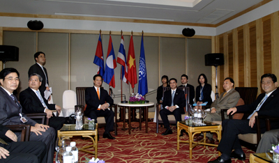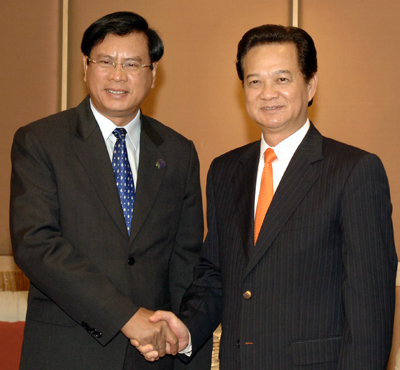 此次峰会期间内阮晋勇总理也会见老挝总理波松·布帕万。会见中两位总理一致认为,越老两国应采取提供合作效果措施,努力将2010年双方贸易金额提升到10亿美金。两位总理也希望在两国各具优势的领域上加强合作;阮晋勇总理建议波松·布帕万总理为到老挝进行投资的越南企业创造良好条件。