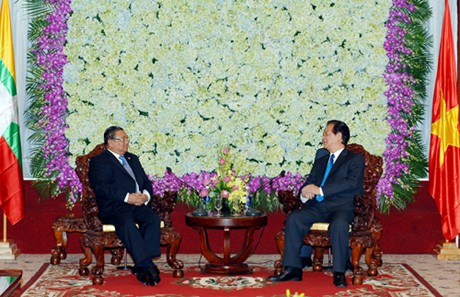 缅甸外交部长吴温纳貌伦向阮晋勇总理转达缅甸总统登盛的问候,对阮晋勇总理将率团出席在缅甸举行的东盟首脑会议表示热烈欢迎,同时高度评价两国在地区和国际场合上的有效配合与合作。
