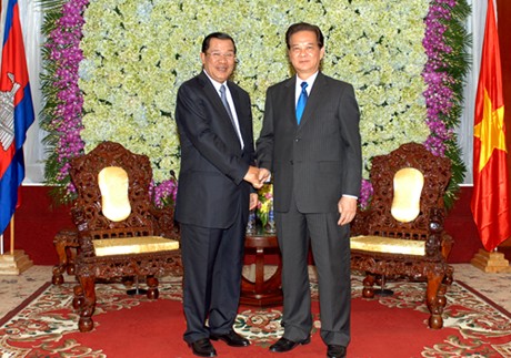 阮晋勇总理表示,越南和柬埔寨两国政府继续指导两国相关机构,加快两国重点项目实施进度,进一步加强在国际和地区事务中的密切配合。