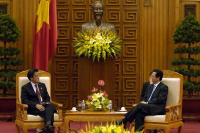 阮晋勇总理接见日本外相冈田克也时表示,越南和日本战略伙伴关系正在积极向前发展。他希望两国在各领域继续深入发展为亚洲和平、繁荣的战略伙伴关系。