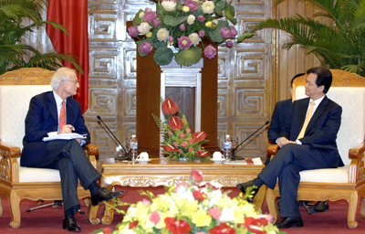11月30日下午在政府总部,阮晋勇总理接见了在越南进行工作访问的著名经济学家、现代竞争学说之父迈克尔.波特教授。
