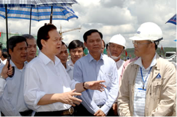 阮总理同工地施工组谈话。图片来源:政府网站 |
