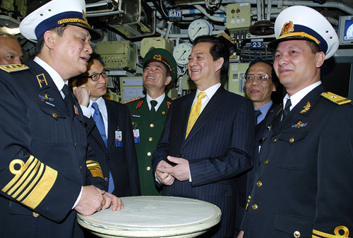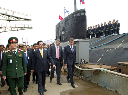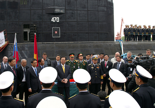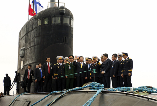 阮晋勇总理站在河内号潜艇前甲板——图片:VGP |