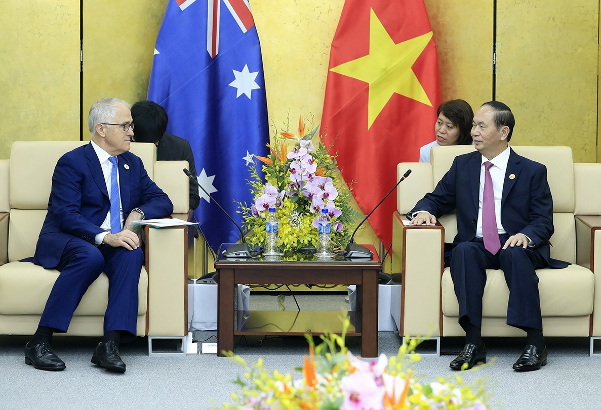 在2017年APEC领导人会议周举行期间,陈大光主席11月10日上午在岘港会见澳大利亚总理谭保——图片:越通社 |
