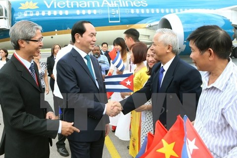 应古巴国务委员会主席劳尔·卡斯特罗(Raul Castro)的邀请,陈大光主席与夫人及越南党和国家高级代表团抵达首都哈瓦那开始对古巴进行为期3天(11月15日至17日)的访问。