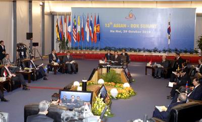 在阮晋勇总理的主持下,第13次韩国与东盟领导人会议于10月29日在河内举行。韩国总统李明博和东盟各国领导人出席了本次会议。