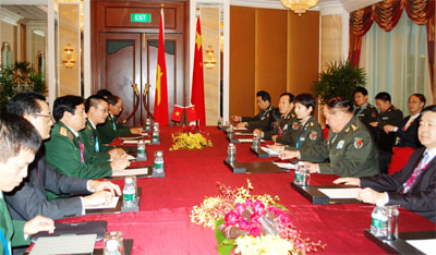 梁光烈上将一致赞成冯光青大将对越中关系正向前发展的评价,认为东海主权争端是两国所存在的问题。梁光烈上将表示,通过外交协商解决东海争端是中国的一贯主张。他说,“中国愿意就此问题在多边论坛上进行讨论并反对单方行动。中国承诺积极维护东海和平与稳定并严格遵守《东海各方行为宣言》”。