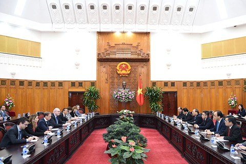 阮春福总理与菲尔·霍根先生一致同意推进越南欧盟合作良好发展,同时同意成立工作组以促进双方投资贸易合作的建议。