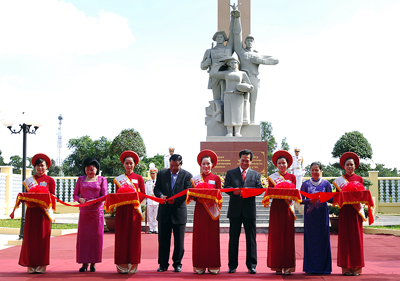 在落成典礼上发表讲话时,阮晋勇总理强调,越南和柬埔寨是山水相连的邻邦国家,越柬两国人民有着悠久的传统友谊关系,在各自国家争取独立自由斗争中紧密团结和相互帮助。