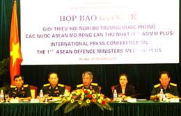 国防部副部长阮志咏(中)主持了关于东盟防长扩大会的记者招待会 |
