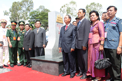 该界碑完工将为两国建立和平友好与稳定的边界线、发展安江和干丹两个边境省的经济社会等方面做出重要贡献。