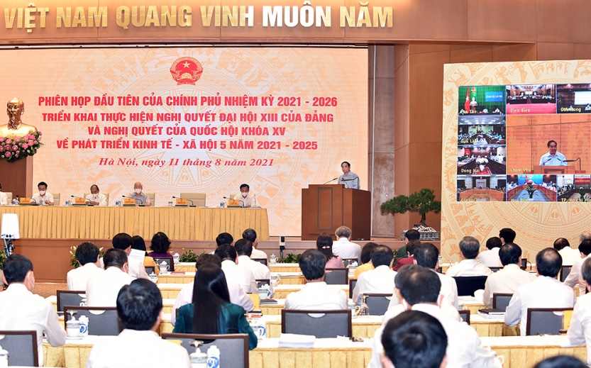 政府总理范明正和黎明慨副总理、黎文成副总理共同主持会议。越共中央总书记阮富仲、国家主席阮春福、国会主席王廷惠出席会议。图片:VGP |