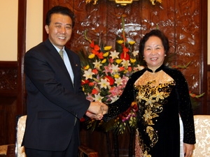 国家副主席阮氏缘与朝鲜驻越南大使金昌一 |